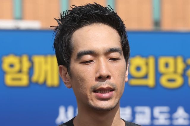 미성년자 성폭행 및 성추행 혐의로 구속된 그룹 룰라 출신 고영욱이 지난 2015년 7월 10일 오전 구로구 천왕동 서울남부교도소에서 복역을 마친 뒤 만기 출소하고 있다. / 뉴스1