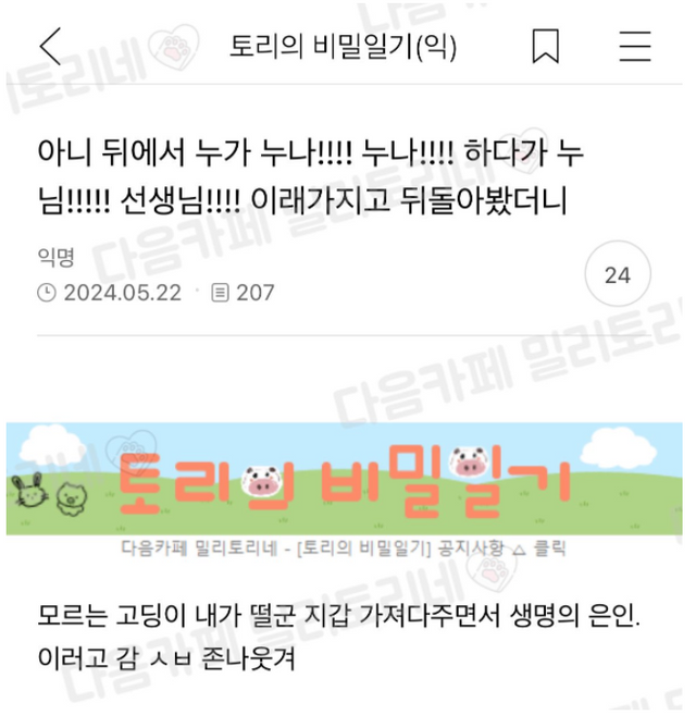 뒤에서 누가 누나!! 누나!!! 하다가 누님!!! 선생님!!!!!! 이래가지고 뒤돌아 봤더니