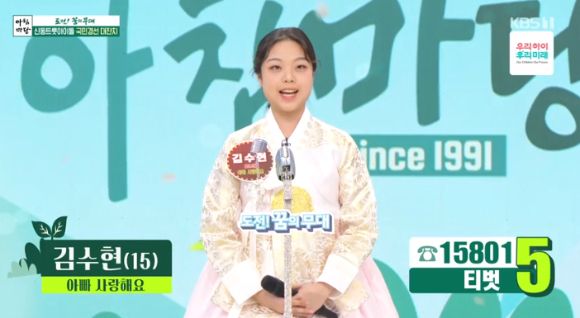 [조이뉴스24 김양수 기자] '아침마당' 15세 김수현이 '도전 꿈의 무대' 재도전에 나선다.