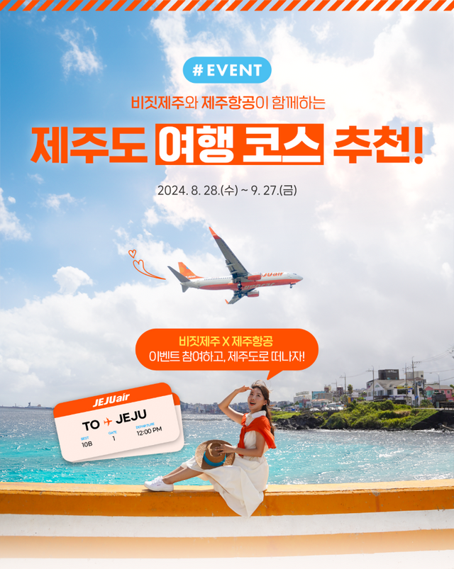 [한라일보] 제주관광공사는 28일부터 9월 27일까지 온라인 채널을 통해 제주항공과 함께하는 ‘나의 제주 여행 코스 추천!’ 온라인 경품 이벤트를 실시한다고 밝혔다.