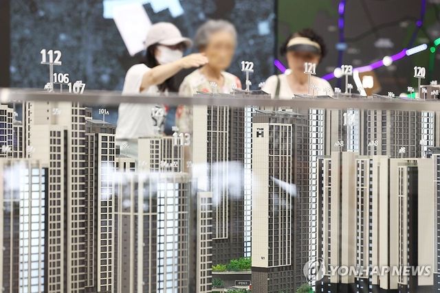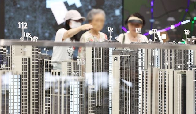 '디에이치 방배' 견본주택에서 사람들이 주택 모형을 둘러보고 있다. / 연합뉴스