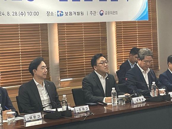 28일 김병환 금융위원장은 보험개발원에서 생명보험협회, 손해보험협회, 화재보험협회, 보험개발원과 10개 보험사 CEO들과 간담회를 가졌다.