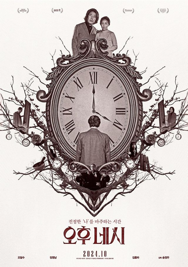 공개된 런칭 포스터는 독보적 분위기가 돋보이는 비주얼로 시선을 압도한다. 커다란 시계를 중심으로, 평화로운 전원생활을 꿈꾸는 부부 정인(오달수)과 현숙(장영남)이 매일 그들의 집을 방문하는 불청객 육남(김홍파)과 대치하고 있는 구도는 긴장감 넘치는 대립을 예고한다. 여기에 연기 경력 총합만 95년인 믿고 보는 베테랑 배우들의 만남 또한 압도적인 시너지를 기대케한다.