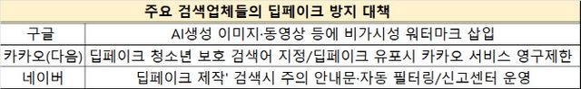 네이버, 카카오 등에선 ‘딥페이크’가 검색되는데 제한을 두고 있고 구글은 AI를 활용해 만들어진 이미지, 동영상 등에 눈에 보이지 않는 워터마크를 삽입하고 있다.