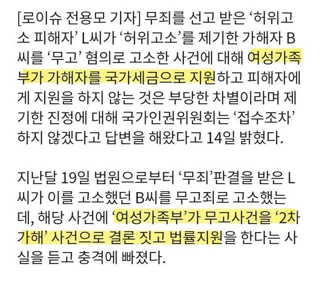 5. 남자, 정작 자신같은 무고죄 피해자 지원 안하고 무고죄 가해자를 지원하는건 차별행위라며 인권의 진정