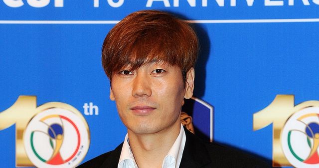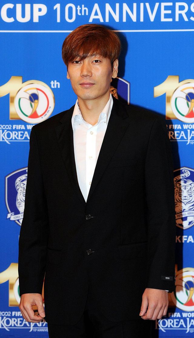 2012년 7월 4일 서울 소공동 롯데호텔에서 열린 2002월드컵 10주년 기념식에 참석한 송종국 TV조선 축구해설위원이 포토월에서 포즈를 취하고 있다. / 뉴스1