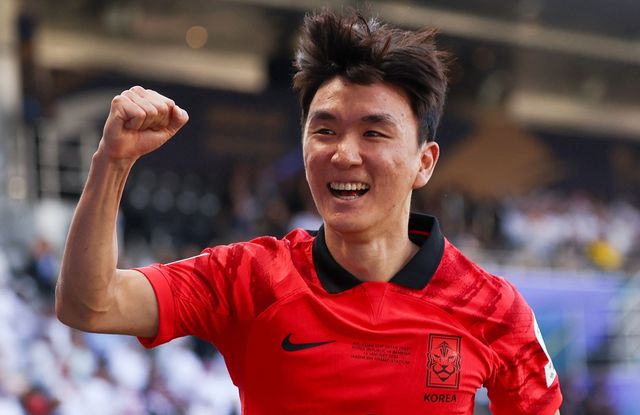 황인범이 지난 1월 15일(현지 시각) 카타르 도하 자심 빈 하마드 스타디움에서 열린 2023 아시아축구연맹(AFC) 카타르 아시안컵 조별리그 E조 대한민국과 바레인의 경기에서 선제골을 넣은 후 세리머니를 하고 있다. / 뉴스1