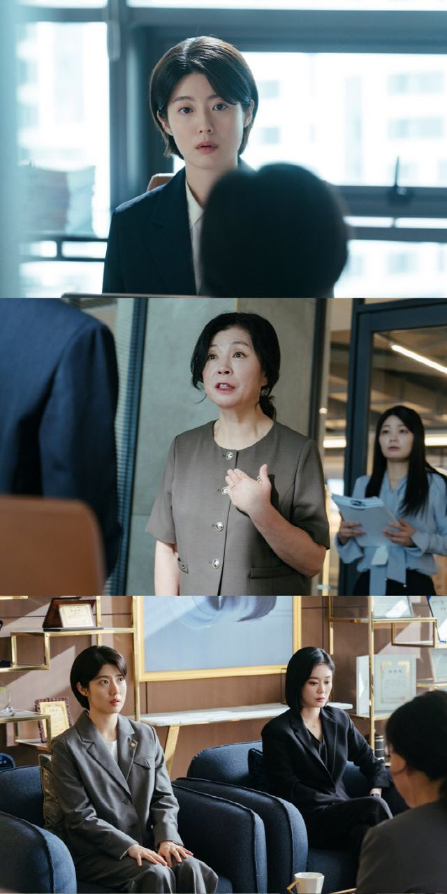 그런 가운데 공개된 사진에는 대정을 찾아온 의뢰인 이순례(차미경 분)와 상담을 진행하는 한유리의 모습이 담겨있다. 무슨 일인지 안절부절못하며 자리를 박차고 일어난 이순례. 흥분한 그의 모습에 놀란 한유리의 표정이 궁금증을 더한다. 이어 이순례의 남편 김영철(이한위 분)을 포함해 온 가족이 총출동한 현장도 눈길을 끈다. 무거운 공기가 흐르는 가족들 사이 당황한 기색이 역력한 차은경과 한유리의 모습도 호기심을 자극한다.