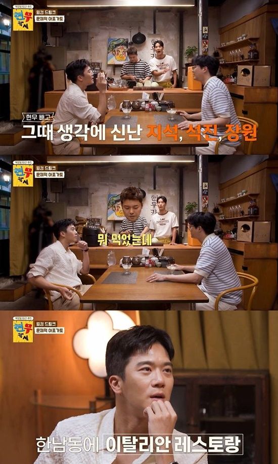 이후 김지석은 화제를 돌리기 위해 이장원에게 "그런데 그 때는 왜 현무 형 안 왔냐. 네 결혼식 끝난 다음에 우리에게 따로 밥 사주지 않았냐"고 말을 꺼냈다.