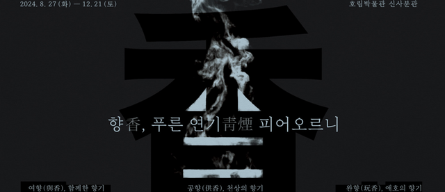 호림박물관의 2024년 두 번째 특별전, <향香, 푸른 연기靑煙 피어오르니>. 이번 특별전은 향을 주제로 향 문화가 우리나라에 뿌리내리게 된 과정을 비롯하여 종교와 향 문화의 관계를 다루는데요. 향 문화가 정착하며 발전하게 된 향과 관련된 그림과 전적, 도자와 금속 등의 각종 공예품 등 작품 170여 점을 선보입니다. 전통문화 속 향의 역사와 의미는 물론 향과 관련된 우리나라의 아름다운 분향 공예품들도 함께 만나볼 수 있으니 이번 주말 호림박물관에 들러 우리나라 전통 향을 직접 경험해 보세요.