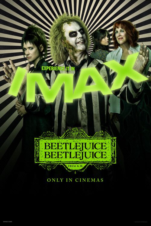 ‘비틀쥬스 비틀쥬스’는 가족들에게 비극적인 사건이 벌어진 이후, 두 번 다시 만나고 싶지 않았던 ‘비틀쥬스’가 소환되며 펼쳐지는 산 자와 죽은 자의 이야기를 담는다. ‘비틀쥬스 비틀쥬스’가 IMAX, 4DX, SCREENX, 돌비 시네마 특별관 상영 소식을 알리며 예매 욕구를 더욱 끌어올리고 있다.