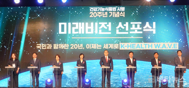 ‘국민과 함께한 20년, 이제는 세계로 K-Health W.A.V.E’주제로 열린 이번 기념식에는 식약처 및 유관기관, 소비자단체, 산업계, 학계 등 관계자 약 170명이 참석했다. 기념식은 기념사와 축사를 시작으로 ▲미래 비전 선포식 ▲공로상 시상 ▲건강기능식품 법 시행 20주년 히스토리 영상 상영 ▲건강기능식품 정책 개선 방안 ▲건강기능식품 산업 미래 비전 및 발전 전략 발표 순으로 진행됐다.
