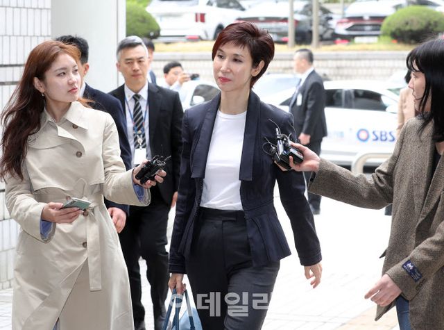 노소영 아트센터 나비 관장이 4월 16일 오후 서울 서초구 서울고등법원에서 열린 SK 최태원 회장과의 이혼 소송 항소심 2차 변론에 출석하고 있다.(사진=이데일리 김태형 기자)