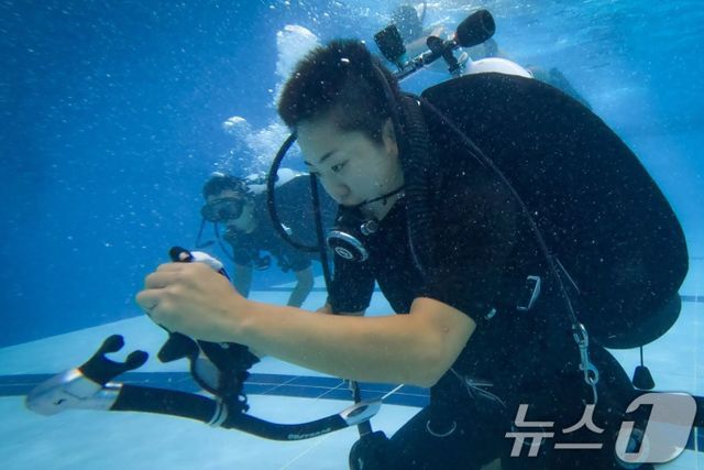 문 중위는 남자 군인과 동일한 기준의 체력·수영검정을 통과한 뒤 입교해 12주간의 교육과정을 이겨내며 여군 최초로 심해잠수사 휘장을 받았다.