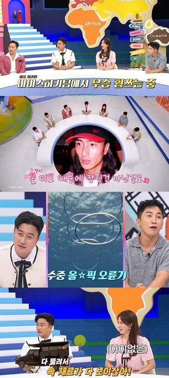 먼저 사이판으로 선 넘은 김채현, 스캇 부부가 새롭게 합류해 스튜디오 출연진들과 인사를 나눴다. “사이판에서 프리다이빙 강사 겸 투어 가이드로 일하고 있다”는 부부는 ‘선 넘은 패밀리, Forever’라고 쓰인 플래카드를 물속에서 선보이는 이색 프리다이빙으로 오프닝을 장식하면서 MC군단을 흐뭇하게 만들었다.