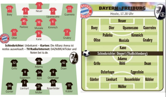 그런 김민재의 선발 여부를 두고 매체들의 전망은 엇갈린다. 먼저 빌트는 뮌헨이 라파엘 게레이로·우파메카노·다이어·사샤 보이로 백4를 구축할 것이라 주장했다. 반면 TZ는 다이어 대신 김민재가 선발 출전할 것이라 내다봤다. 개막전과 비교하면 부진한 알폰소 데이비스가 빠진 것이 공통점이다.