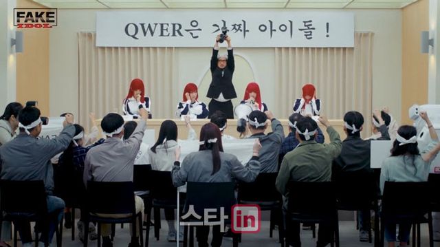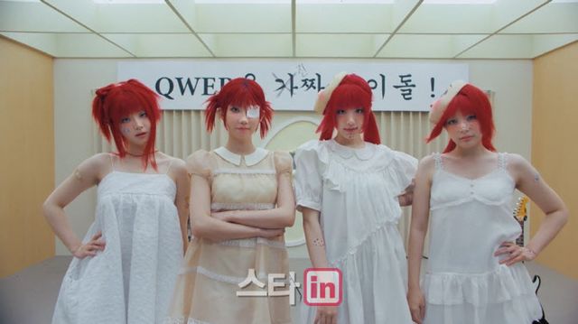 영상에는 ‘가짜 아이돌’ 논란에 휩싸인 QWER이 기자회견을 연 모습이 담겼다. 빨간 머리로 파격 변신한 QWER은 자신들을 향해 “가짜 아이돌”이라고 외치던 이들 앞에서 공연을 선보이는 이야기가 펼쳐진다.