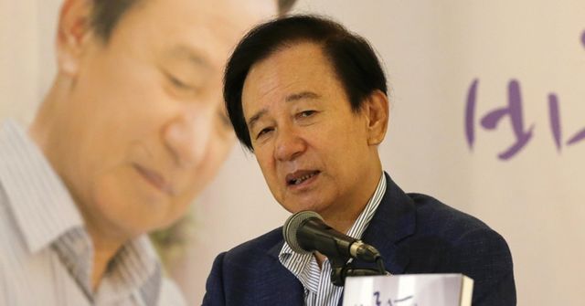 김홍신 작가가 2017년 8월 8일 오전 서울 중구 프레스센터에서 열린 '바람으로 그린 그림' 출간기념 기자간담회에서 소감을 밝히고 있다. / 뉴스1