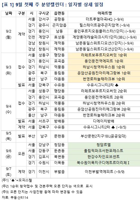 [아이뉴스24 이수현 기자] 9월 첫째 주에는 전국 5개 단지, 총 3495가구(일반분양 2330가구)가 분양을 시작한다. 견본주택은 강남 청약 대어로 꼽히는 '청담르엘'이 개관 예정이다.