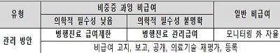 또한 비중증 과잉 비급여 중 의학적 필수성이 불명확한 경우에는 현행 선별급여제도 내에 병행진료 관리급여를 신설하여 본인부담 강화, 가격설정, 진료데이터 확인 등 건강보험체계 내에서 관리 방안을 모색한다.