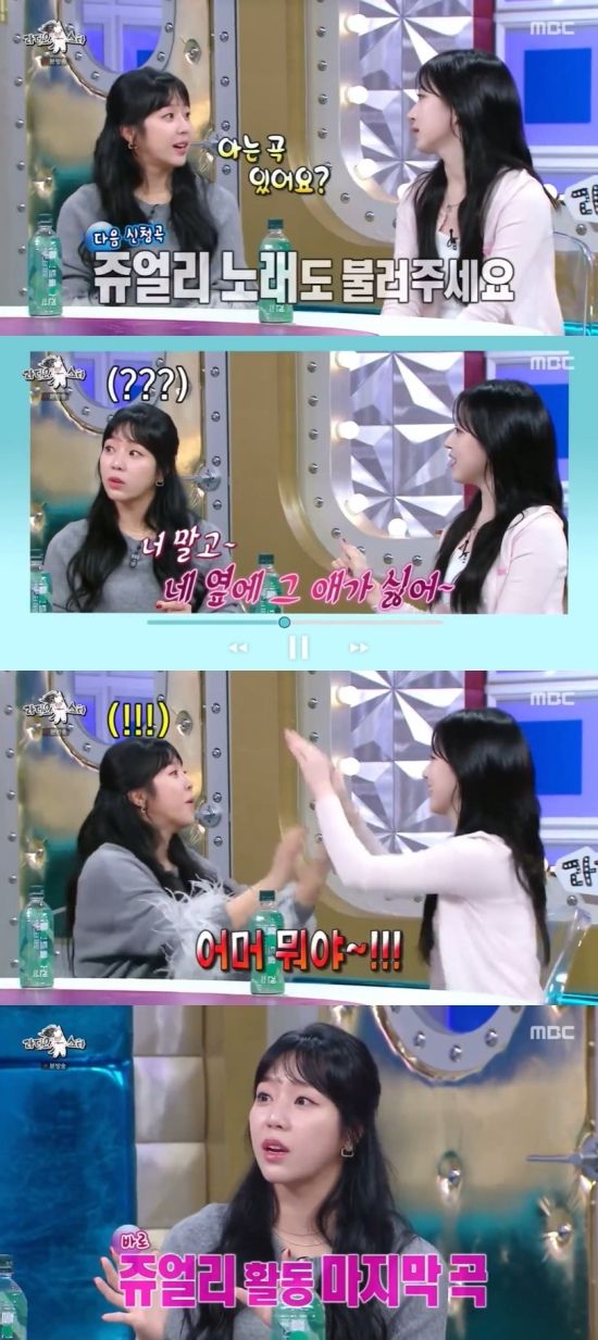 이를 들은 예원은 잠시 생각하는 듯 하다가 "어머 뭐야"라고 감동한 모습을 보였고, MC들은 어떤 노래인지 모르는 눈치였다. 이에 예원은 해당 곡이 쥬얼리의 마지막 활동곡('Hot & Cold')이었다고 전했다.