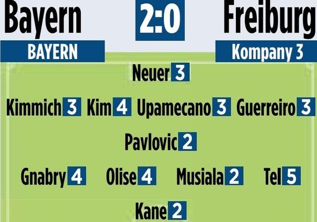 뮌헨은 전반 36분 선제골로 앞서갔다. 해리 케인의 헤더가 상대 수비수 팔에 맞으면서 페널티킥이 선언됐다. 케인이 키커로 나서 깔끔하게 성공시켰다. 전반전을 1-0으로 앞선 채 마쳤다.