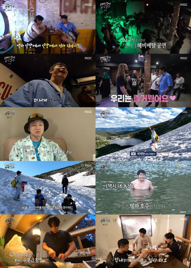 이날 방송에서는 로키산맥의 대자연을 온몸으로 만끽한 기안84, 빠니보틀, 유태오의 즐겁고 흥미진진한 여정이 그려졌다. 앞서 유태오와 메탈 공연을 관람한 기안84는 메탈 음악의 강렬한 사운드와 비트에 빠져든 나머지 ‘사탄84’로 거듭나고 말았다. 샤우팅은 기본이고 사람들과 부딪히는 슬램, 헤드뱅잉까지 메탈 음악과 하나 된 모습을 보이더니 사이먼 도미닉, 장도연, 이승훈, 이시언, 빠니보틀을 향해 별안간 사형 선고를 내려 폭소를 자아냈다.