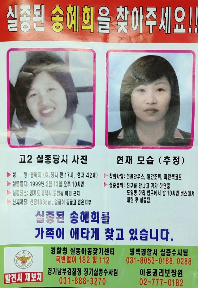 송씨 부부는 생업도 포기한 채 전국 휴게소 등지를 돌면서 실종 전단지를 나눠주던 이들이다.
