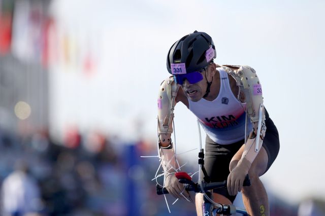 김황태는 2일(한국시간) 프랑스 파리 센강에서 열린 2024 파리 패럴림픽 트라이애슬론(PTS3 등급)에 출전, 수영(750m) 사이클(20㎞) 달리기(5㎞) 코스 합산 1시간24분01초만에 완주했다. 전체 11명 중 10위로 피니시 라인을 통과했다.