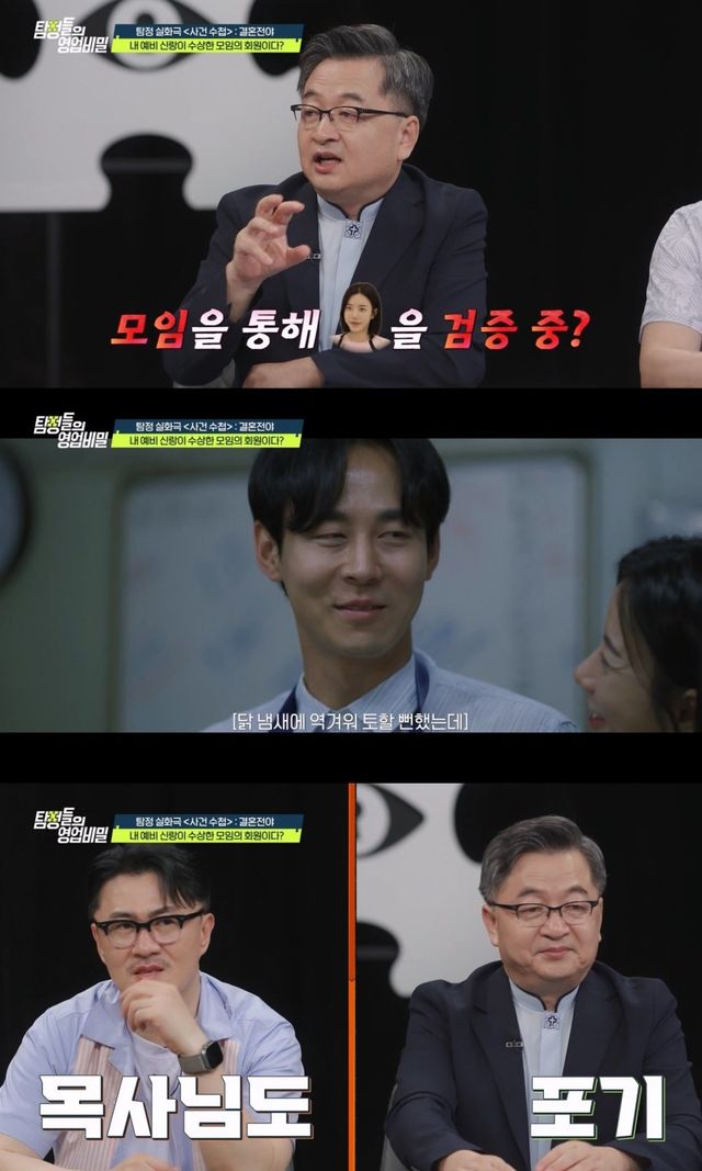 그리고 매주 ‘수요일’마다 사라지는 예비 신랑에게 의혹을 제기했다. 알고 보니 예비신랑은 매주 수요일마다 정기적으로 다른 회사의 남성들과 '스터디'를 하고 있었다. 데프콘은 "관심사를 알아내야 하는데...'주식 리딩방'은 안 된다. 주식하지 마세요...제가 지금 망했어요"라고 뼈에 사무친 경고를 날렸다.