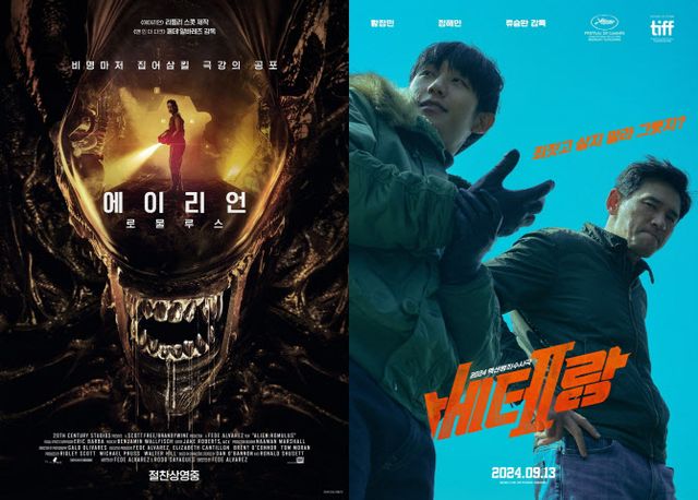 [이데일리 스타in 김보영 기자] 영화 ‘에이리언: 로물루스’(감독 페데 알바레즈)가 4주차 평일에도 연속으로 박스오피스 정상을 지켰지만, 일일 관객수가 2만명대까지 떨어지며 극장가가 소강 상태에 접어들었다. 이 가운데 추석 연휴를 앞두고 오는 13일 개봉하는 ‘베테랑2’(감독 류승완)가 개봉 열흘 전부터 10만명에 근접한 예매량을 기록하며 구원투수가 되어줄지 주목된다.
