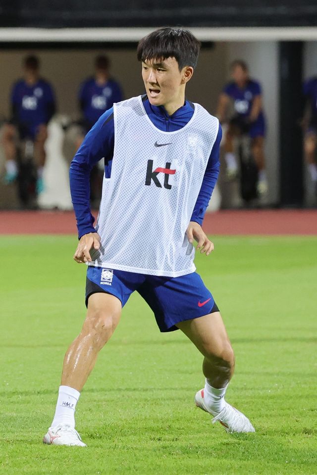 2026 북중미 월드컵 아시아 2차 예선 조별리그 C조 5차전 싱가포르전을 앞둔 한국 축구 국가대표팀 황인범이 지난 6월 3일(현지 시각) 오후 싱가포르 비샨 스타디움에서 훈련하고 있다. / 연합뉴스