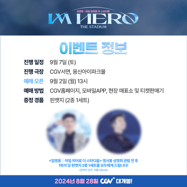 한편, 영화 '임영웅│아임 히어로 더 스타디움'은 전국 CGV에서 만날 수 있다.