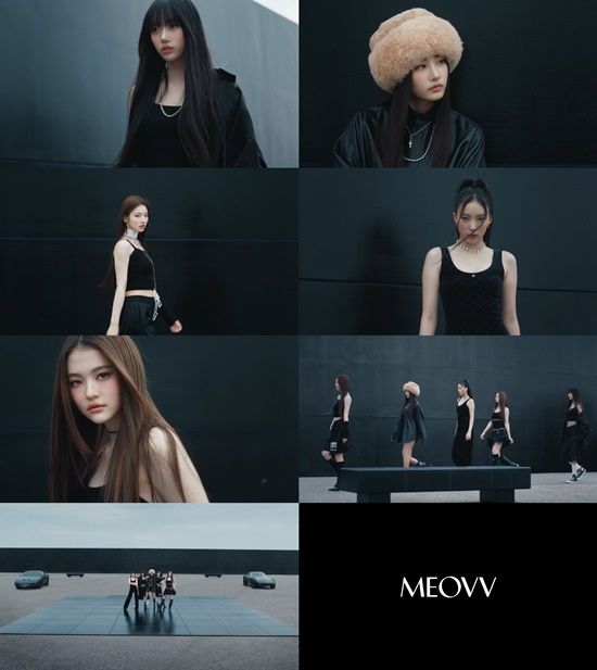공개된 영상에는 황야를 가로지르는 게이트를 통과해 하나둘 등장하는 'MEOVV'(미야오) 멤버들의 모습이 담겼다. 시크한 블랙 컬러 룩으로 일관된 콘셉트를 보여주는 다섯 멤버는 마치 런웨이를 연상케 하는 모델 같은 워킹으로 시선을 사로잡았다.