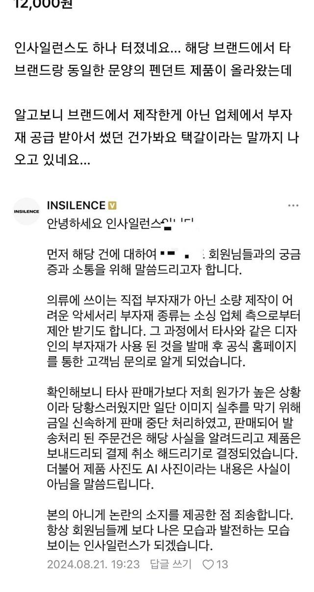 무신사에서 상위권에 더현대에도 입점한 브랜드가 알리 택갈이 하다가 걸림
