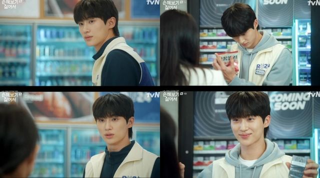 tvN 새 월화드라마 ‘손해 보기 싫어서’(극본 김혜영, 연출 김정식)는 손해 보기 싫어서 결혼식을 올린 여자 손해영(신민아 분)과 피해 주기 싫어서 신랑이 된 남자 김지욱(김영대 분)의 손익 제로 로맨스 드라마다. 지난 3일 방송에서 변우석은 편의점 아르바이트생 역으로 등장만으로도 안방에 반가움을 선사했다.