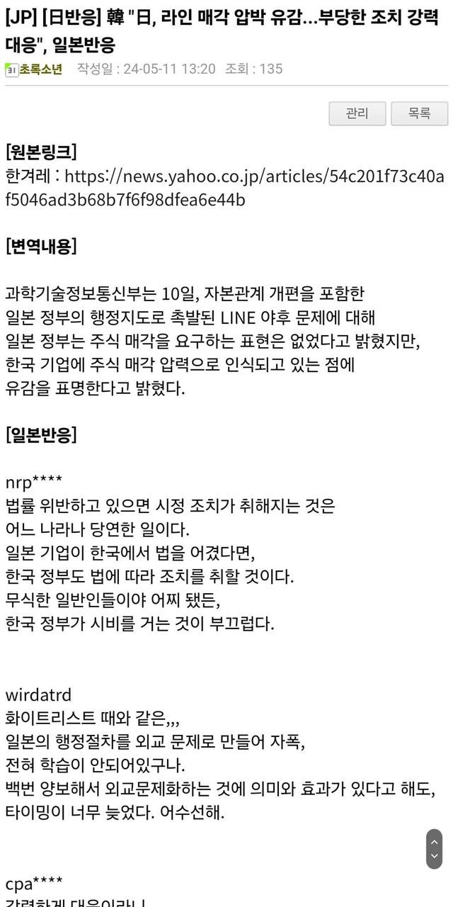 일본 네또우요들의 라인 사태 반응