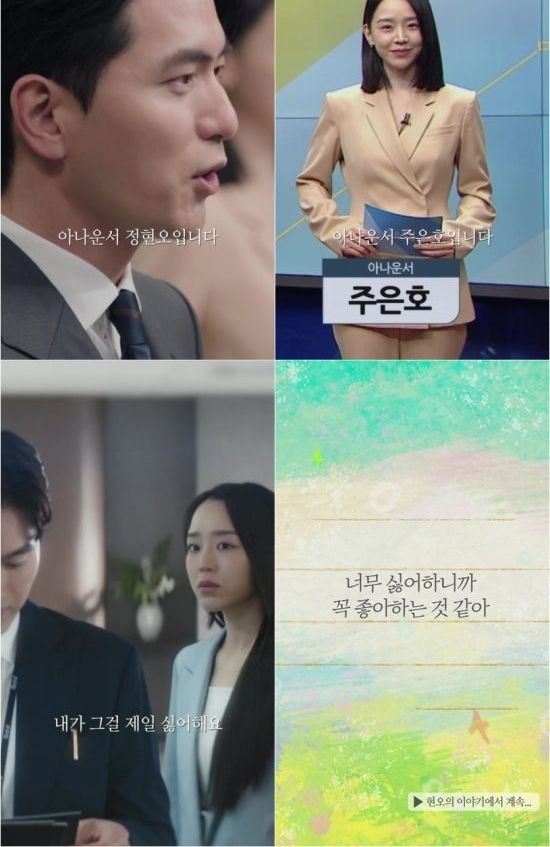 신혜선은 존재감 제로의 14년 차 아나운서 주은호 역과 주차장 관리소 직원 주혜리 역을 맡아 1인 2역을 소화하며 독보적인 존재감 발산을 예고한다. 이진욱은 아나운서국의 스타이자 호감도 1위 엄친아 아나운서 정현오 역을 맡아 훈훈한 비주얼에 탁월한 능력까지 갖춘 만능 아나운서의 면모를 선보인다. 이 가운데 아나운서국의 8년 차 공식 커플에서 현재는 헤어져 서로를 극혐하는 사이가 된 주은호의 캐릭터 포스터와 숏폼 드라마 첫 번째, 은호 편이 공개돼 궁금증을 증폭시킨다.