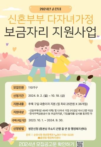 | ▲ 순천시, 2024년 신혼부부 · 다자녀가정 보금자리 지원 대상자 모집 |