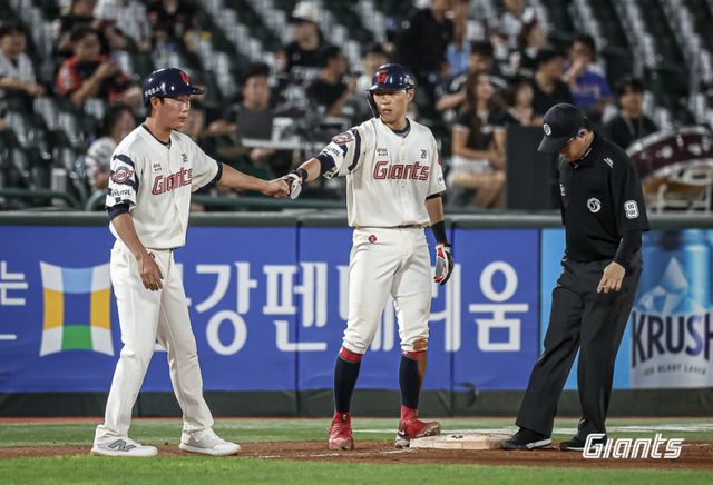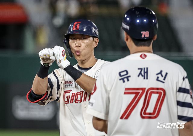 반격은 7회였다. 선두 타자 빅터 레이예스가 안타로 출루한 상황에서 베테랑 전준우와 정훈이 차례로 2루타를 치며 3-4, 1점 차 추격을 이끌었고, 후속 타자 나승엽도 우전 적시타로 4-4 동점을 만들었다.
