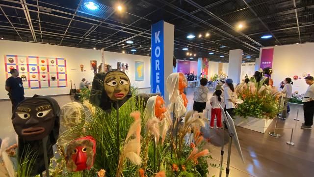 上月22日,在2024年“东亚文化之都”金海市举行韩中日传统面具展览。【图片提供 韩联社】