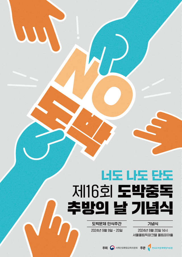 사행산업통합감독위원회(이하 사감위)가 지정한 ‘도박중독 추방의 날’은 매년 9월 17일로, 해당 주간은 도박문제 인식주간으로 운영된다. 2024년에는 추석 연휴와 겹쳐 9일부터 20일까지 약 2주 동안 진행된다.