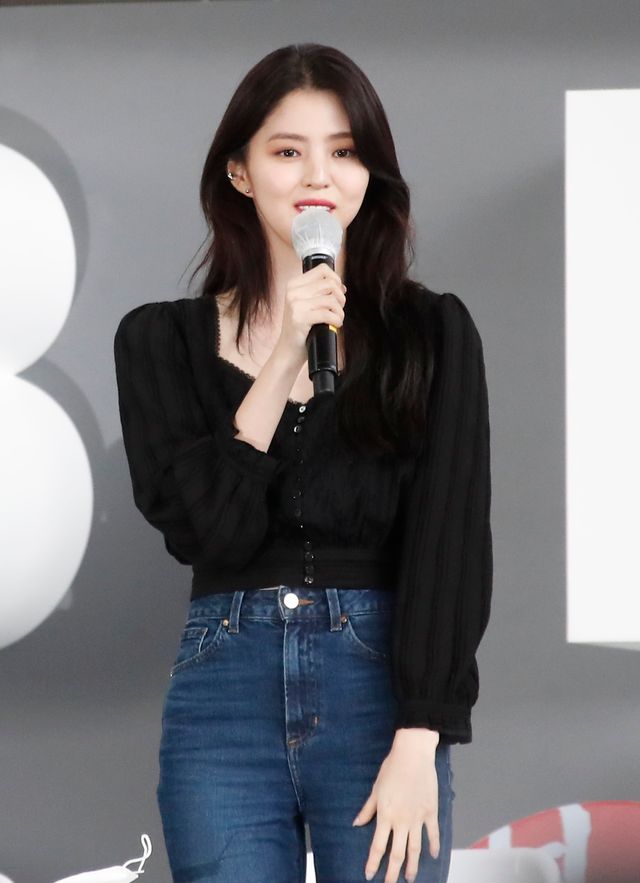 배우 한소희가 2021년 10월 8일 부산 영화의전당 야외무대에서 열린 영화 ‘마이 네임’ 오픈토크에 참석해 인사말을 하고 있다. / 뉴스1