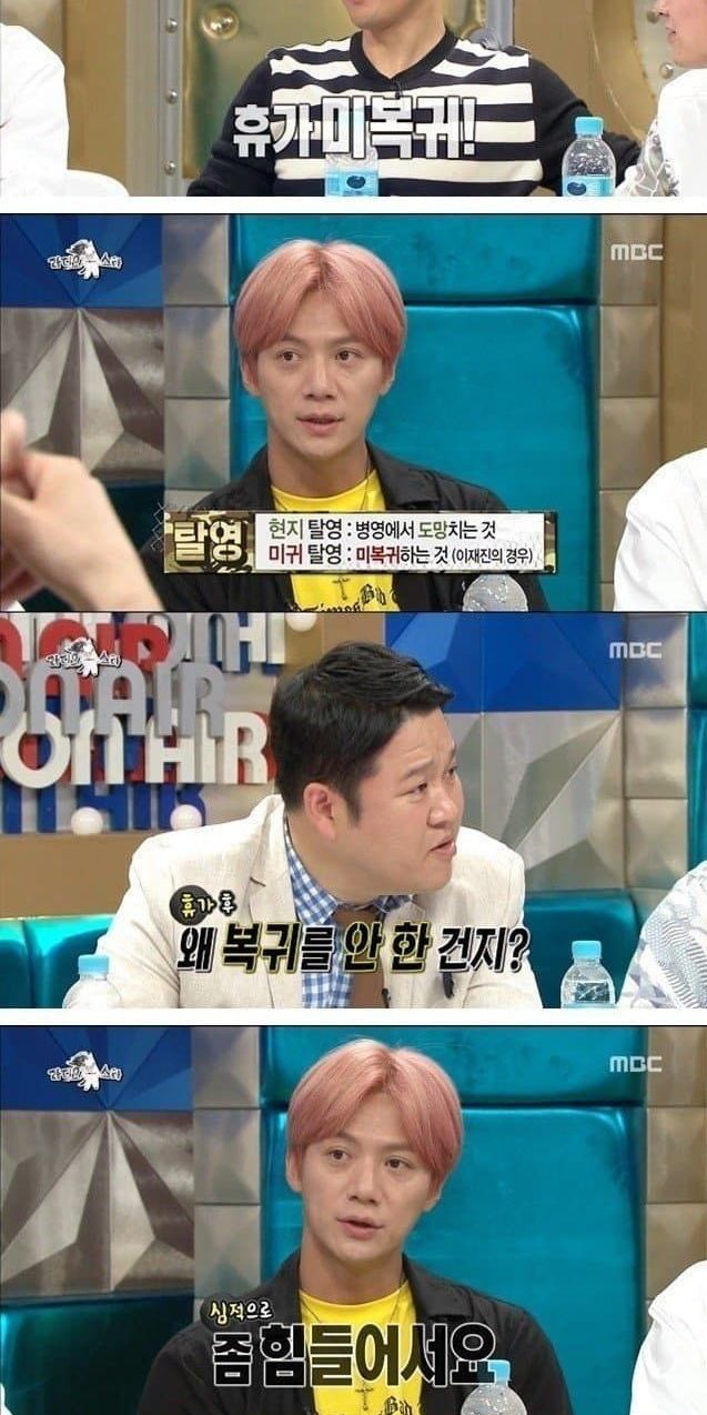대체복무 인정 못받고 2008년 재입대한거라 이재진이 멘탈 나간것도 있음.