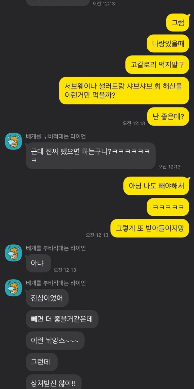 요즘 나랑 연애하면서 혼자만 살쪘었고 평소에 다이어트 하겠다 말하는데 내가 봐도 평소에 먹는거 보면 조절은 하나 근육량이랑 덩치 생각해서 조절하는게 힘들어보였음 근데 내가 먹는거 줄여야한다 저렇게 카톡을 보냇는데 저렇게 카톡이옴 근데 성격이 좀 이상하다 생각들고 그러는데 나만 예민한가..?