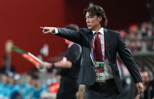 홍명보 대한민국 축구대표팀 감독이 5일 오후 서울 마포구 서울월드컵경기장에서 열린 2026 국제축구연맹(FIFA) 북중미 월드컵 아시아 3차 예선 B조 1차전 대한민국과 팔레스타인의 경기에서 선수들에게 작전을 지시하고 있다. / 뉴스1