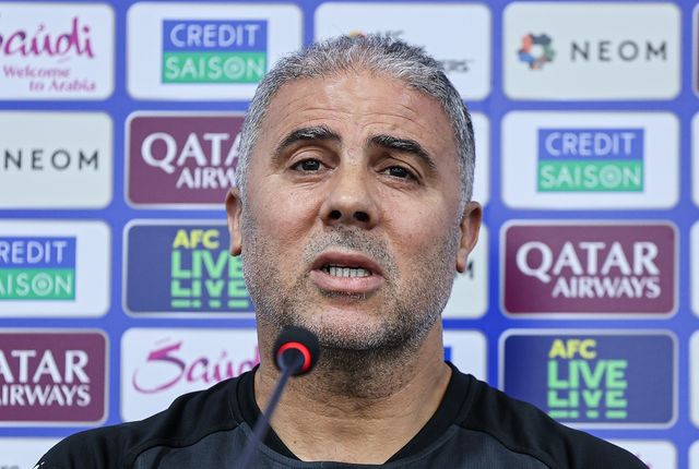 팔레스타인 축구 국가대표팀 마크람 다부브 감독이 지난 4일 오후 서울 마포구 서울월드컵경기장에서 2026 국제축구연맹(FIFA) 북중미 월드컵 아시아지역 3차 예선 경기를 앞두고 열린 공식 기자회견에서 각오를 밝히고 있다. / 뉴스1