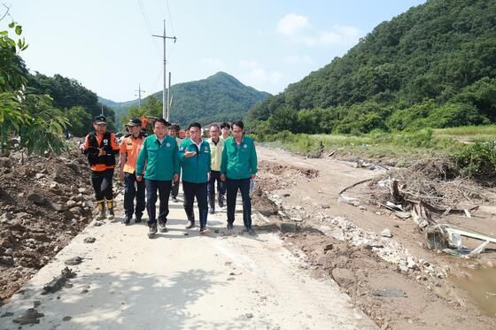 영동군 피해 점검(2024.7.12.) 김영환 도지사, 영동군수 등 |