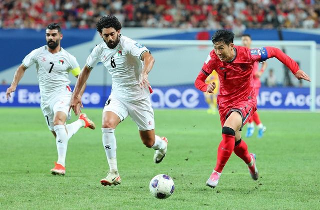 지난 5일 오후 서울월드컵경기장에서 열린 2026 FIFA 북중미 월드컵 3차 예선 대한민국 대 팔레스타인의 경기. 손흥민이 드리블을 하고 있다. / 연합뉴스