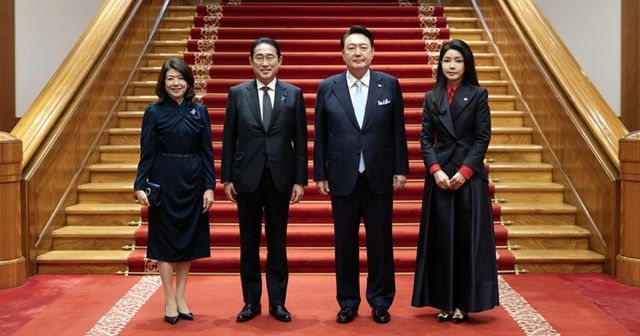 기시다 총리는 유코 요사와 이날 1박2일 일정으로 한국을 실무 방문했다. 윤 대통령 부부와 기시다 총리 부부는 이날 청와대 영빈관에서 만찬도 함께 했다.